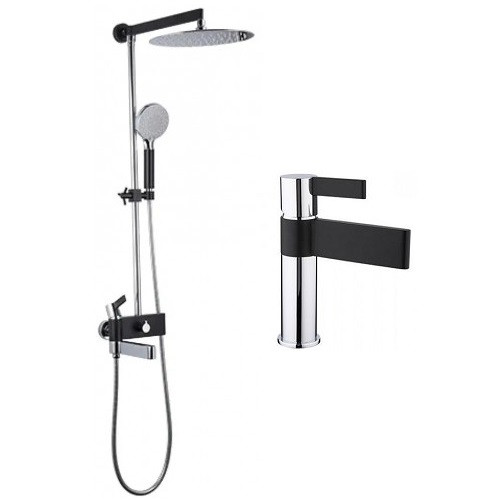Набір душова система з тропічним душем + змішувач на умивальник G2481-1 чорний хром