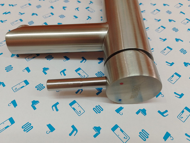 - Усі комплектуючі (кріплення змішувача на умивальник, тропічний душ 250*250 мм, шланг для душу, кріплення змішувача, чашки, тримач душу та душову систему) виготовлені з неіржавкої сталі марки AISI 304, ручний душ abs пластик.